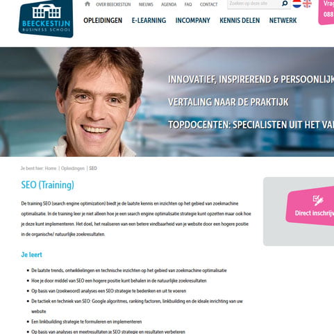 Naast ondersteuning kan ik je ook trainen op het gebied van Zoekmachine Marketing. Na deze trainingen kun je zelfstandig aan de slag met het maken van goede en waardevolle Online Marketing analyses en heb je nieuwe inzichten in hoe je jouw bedrijf hoger in Google kunt krijgen. Wil je meteen je website aanpakken en zo goed mogelijk inrichten voor Online Marketing? Dan kan mijn partner in webdesign dit voor je regelen.