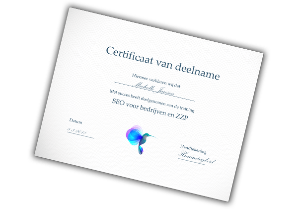 Leer SEO op praktische wijze in te zetten om (nog) meer klanten met grote kans op conversie te bereiken. Door tussentijdse huiswerkopdrachten leer je in de training de theorie direct in de praktijk te brengen voor jouw specifieke case.